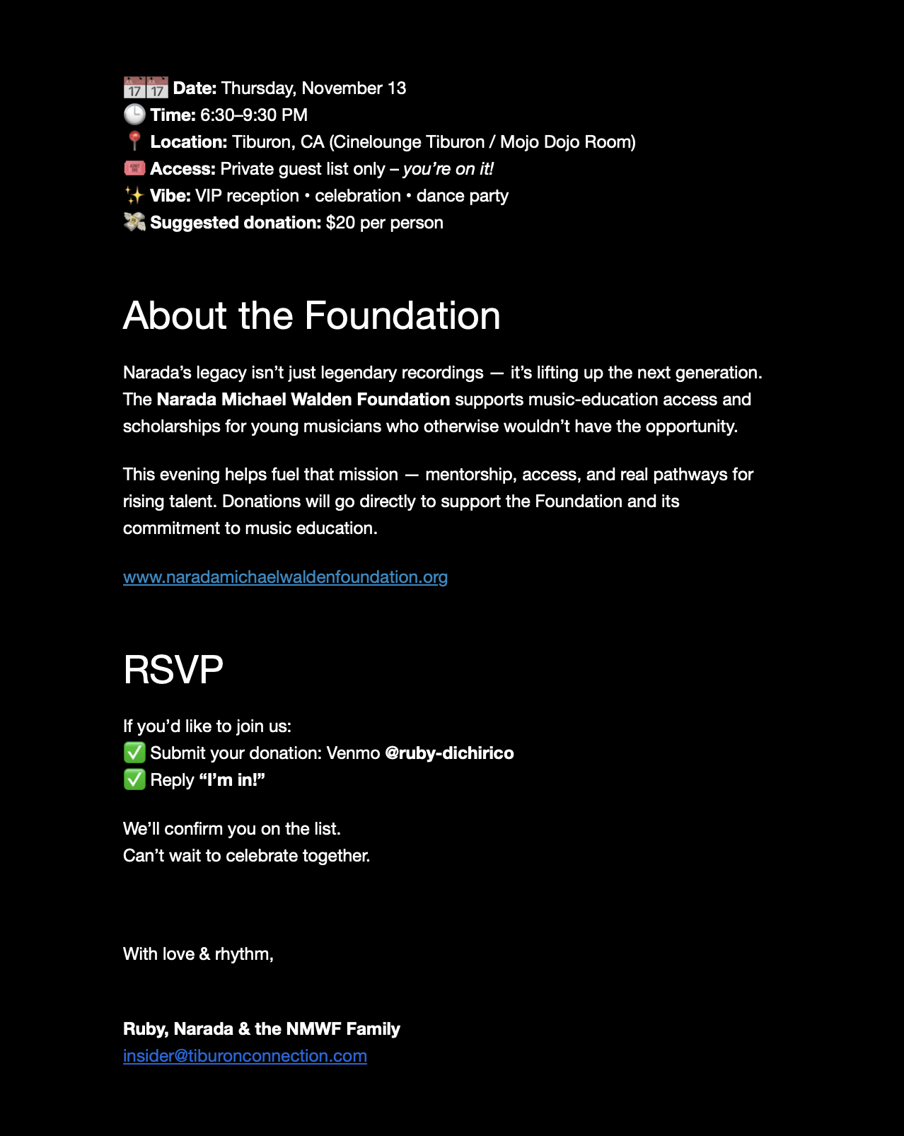 Album Release Party Thursday, November 13, 2025 6:30 PM 9:30 PM Cinelounge Tiburon 40 Main St Tiburon (map) Google Calendar ICS insider@tiburonconnection.com